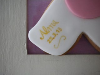 | Por último hacemos los lazos y……… listas! Luego le hice un chupete para diferenciar la galleta de Alma de la de su hermana Lucia. |