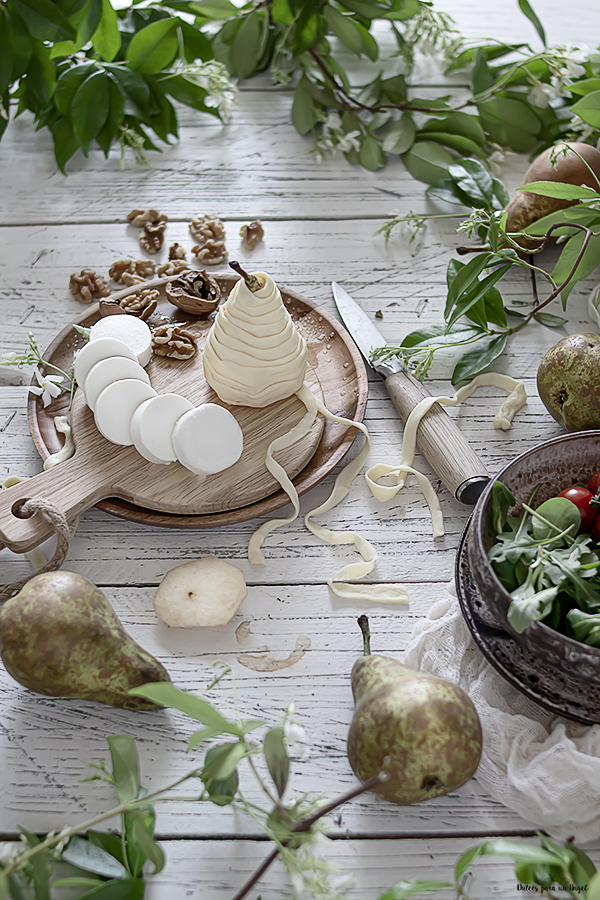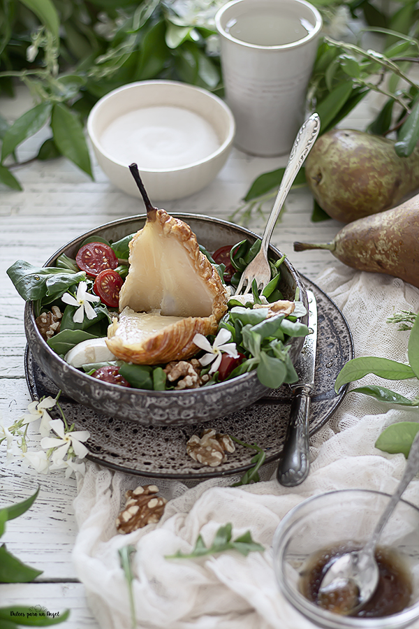 Se puede servir la ensalada con las peras tibias o frías (personalmente me gustan más tibias)