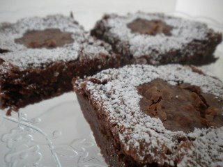 Es un brownie de chocolate negro sin nueces. Según el libro Las recetas de la pastelería Hummingbird, los brownies deben de ser «compactos pero tiernos, y chocolateados» . No ponen nueces, aunque se le pueden añadir, naturalmente. En mi receta he reducido a la mitad la cantidad de azúcar.