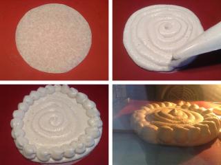 Preparamos un circulo en papel de horno y lo pondremos encima de silicona, o simplemente forramos la bandeja con el papel y dibujamos el círculo.