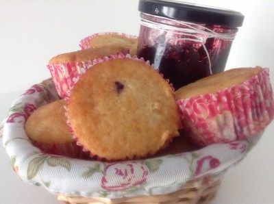 Mas recetas con moras. Están de temporada y mi hermana me ha traído unas cuantas…… y con regalo sorpresa!!! Una mermelada de moras casera para chuparse los dedos! Así da gusto 🙂 He adaptado la receta muffins de arándanos del libro Las recetas de la pastelería Hummingbird. INGREDIENTES: