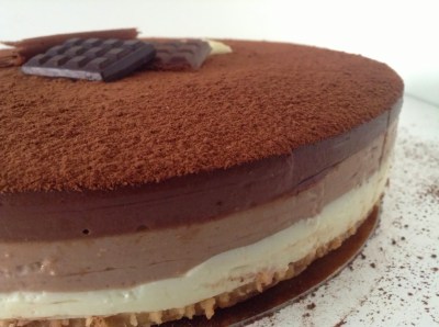 Otra receta con chocolate, a decir verdad, con tres chocolates distintos; es un clásico muy conocido y seguro que vais a querer hacerla en alguna ocasión especial. Es menos difícil de lo que parece no necesita horno y la textura es de flan……. a que se os hace la boca agua 😉