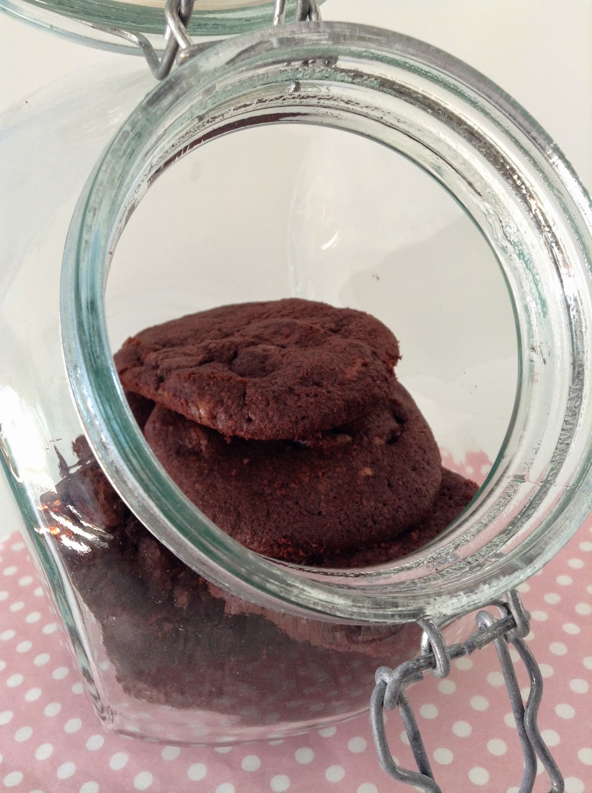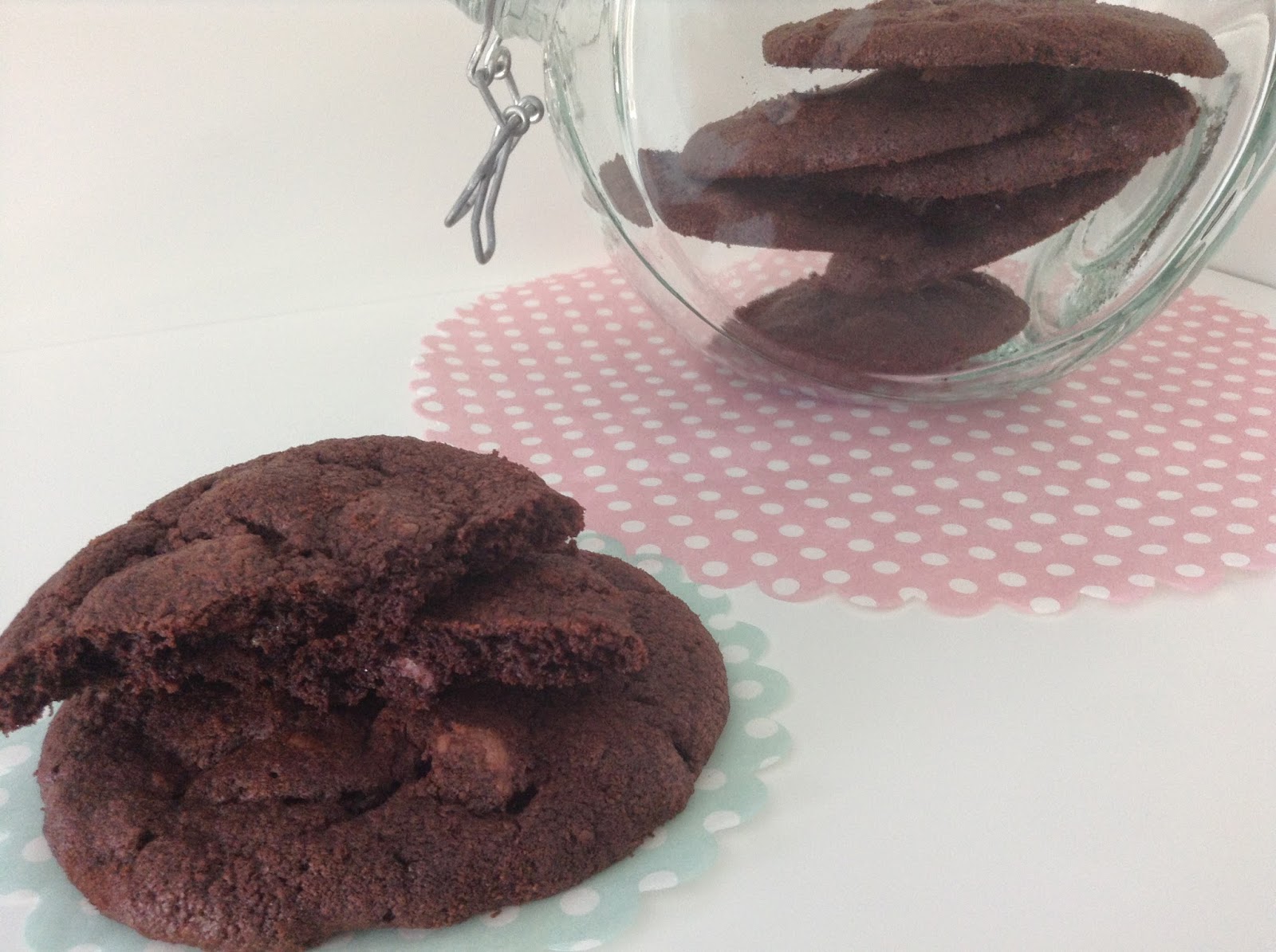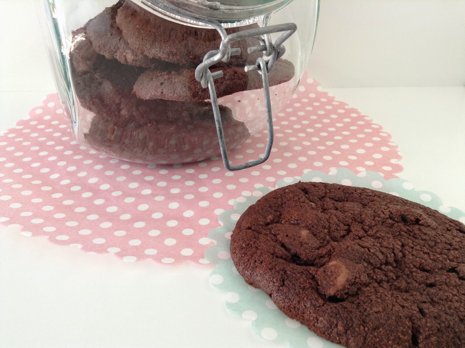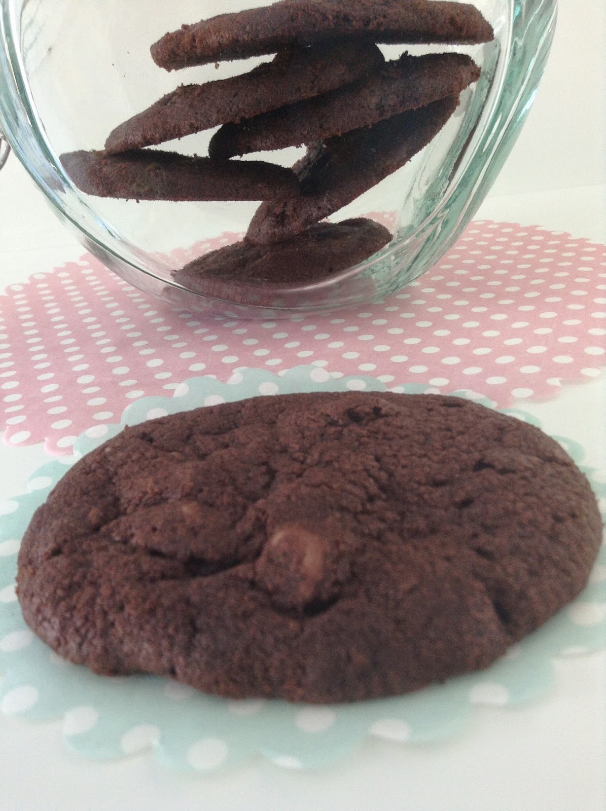 A mi Javi le gusta picar alguna galleta entre la comida y la merienda, y como el verano es muy largo y da tiempo de muchas cosas, hemos estado haciendo galletas. Galletas con Lacasitos, cookies, galletas de mantequilla rellenas de Nutella y estas cookies de doble chocolate han sido las recetas que hemos hecho juntos; la verdad es que Javi pesaba los ingredientes y amasaba a mano o a máquina según la receta oportuna….. y ha disfrutado igual que comiéndolas. Javi es un crak 🙂