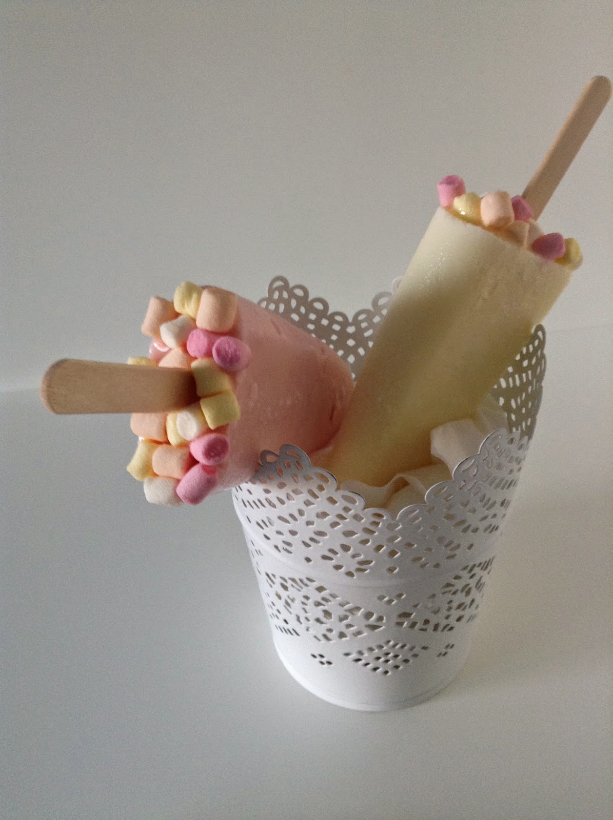 Antes de congelarse del todo, puedes poner decoraciones comestibles, sprinkles, fideos de colores o unas mini nubes como las mías 😉