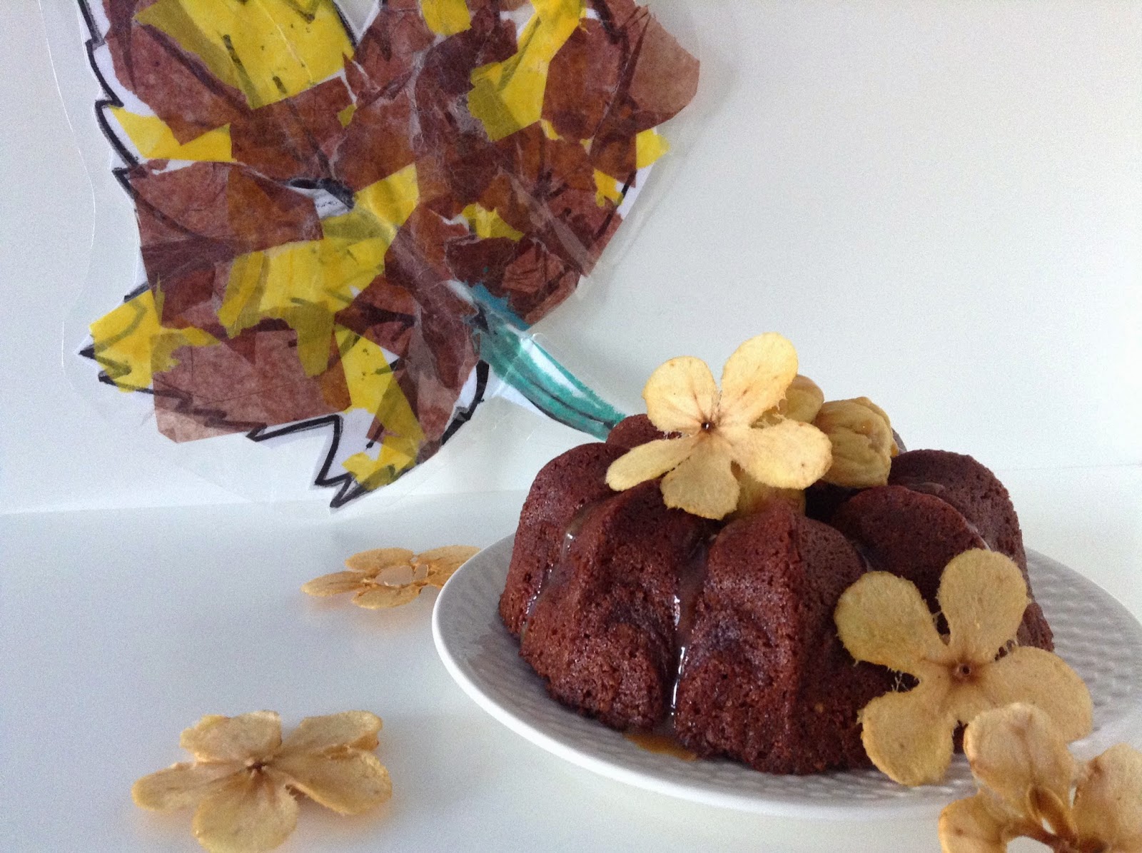 Para decorar he usado unas castañas peladas y unas flores de manzana que he secado en el horno, además de la maravillosa hoja de otoño de MARCOS =)