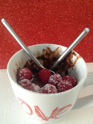 Algo fácil y resultón. Ahora parece que se han puesto de moda los mug cake. Un mug cake, no es ni más ni menos que un bizcocho preparado en una taza de desayuno. Como lo horneamos en el microondas es rapidísimo. Para el día de San Valentín se lo he preparado de desayuno a mi chico, que con un poco de decoración quedamos taaaaaaan bien! (seguro que aún estás a tiempo, si no es para el desayuno, para la merienda o de postre =P)