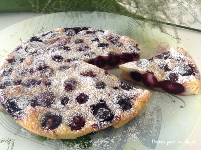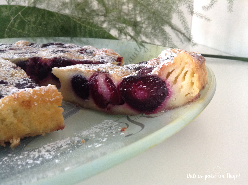 Este postre de origen francés, se compone de una masa entre flan y tarta relleno de cerezas.
