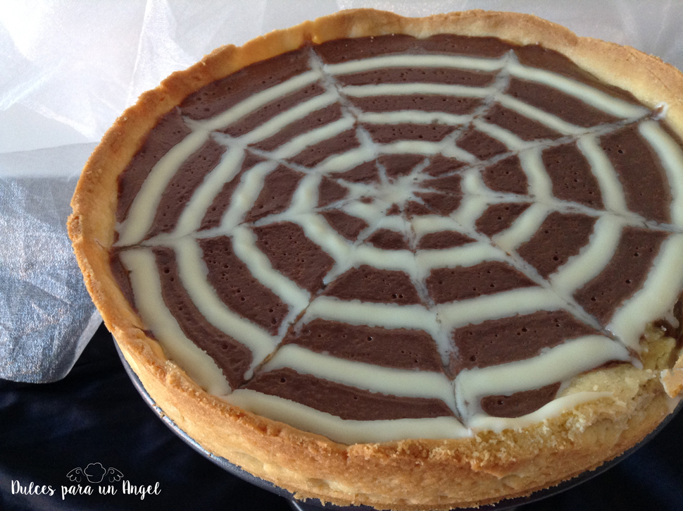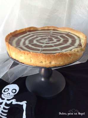 Mañana celebramos Halloween con nuestros amigos de ASA. Iremos a Yela como el año pasado, a disfrutar de esta fiesta importada pero que tanto nos gusta. Llevaré unos cupcakes de calabaza y ésta tarta de chocolate con dibujo de telaraña.