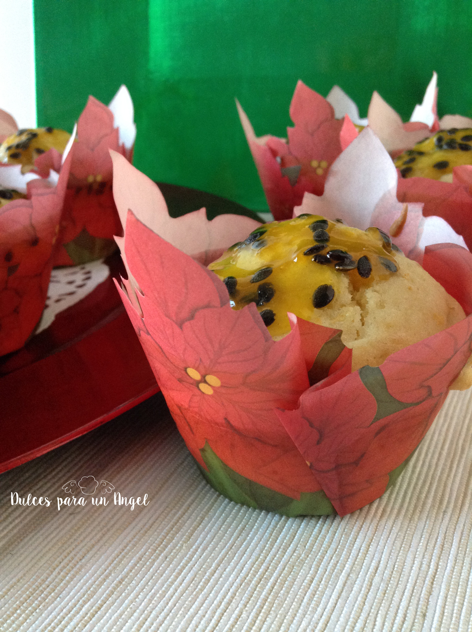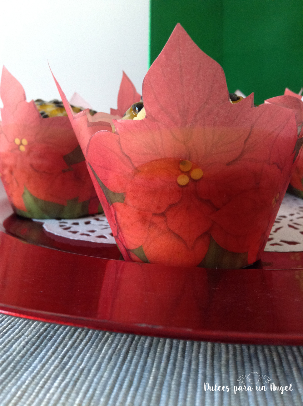 Unos muffins muy tropicales. Como estamos en época navideña es más fácil encontrar frutas tropicales en los supermercados, solo hace falta poner unas tulipas con motivos acordes del momento y ya tenemos receta para navidad. Lo que ocurre es que apenas me gustan los dulces tradicionales porque la mayoría son a base de almendra y me resultan muy pesados y secos, por eso no tengo recetas de mantecados, mazapanes, polvorones o demás dulces típicos. Eso es lo que hay 😉