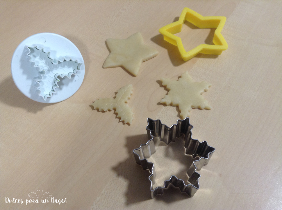 Sacamos la masa del frigo, la ponemos en la encimera espolvoreada de harina y estiramos. Cortamos con un cortador con los bordes de blonda y ponemos en cada hueco una base para cada tartaleta. Rellenamos y tapamos con otro trocito de masa, en mi caso en forma de estrella, copo de nieve o acebo.