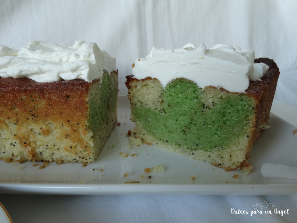 A la masa restante le incorporamos la semillas de amapola y reservamos en el frigorífico porque la usaremos cuando el bizcocho verde esté horneado y frío.