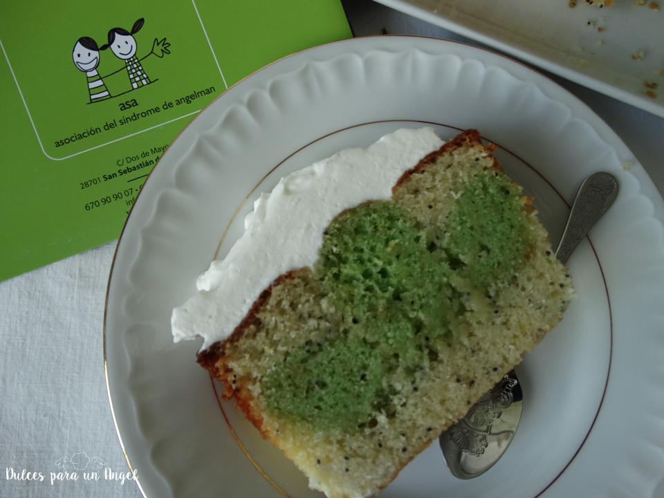 Para rememorar el día, he hecho un cake de lima y semillas de amapola, con la peculiaridad de encontrar un ángel dentro del bizcocho. Realmente no está muy bien definido pero la intención es lo que cuenta….o eso espero. Normalmente hago la receta una vez, y salga como salga no la repito ( a no ser que sea una chapuza auténtica, en ese caso no la publico…jejeje). Podía haber salido bastante mejor pero me pareció aceptable. Lo realmente importante es dar difusión al síndrome para que se conozca y luchemos todos juntos.
