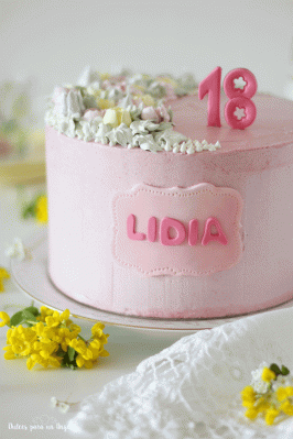 Una tarta para Lidia por su 18 cumpleaños. Espero que la disfrutarais tanto como yo haciéndola.