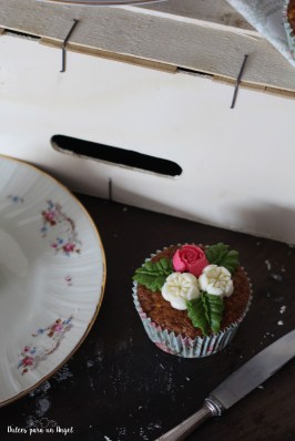 Para la decoración de los cupcakes sólo hay que hacer unas flores con hojas alternas en el centro dejando los bordes libres.
