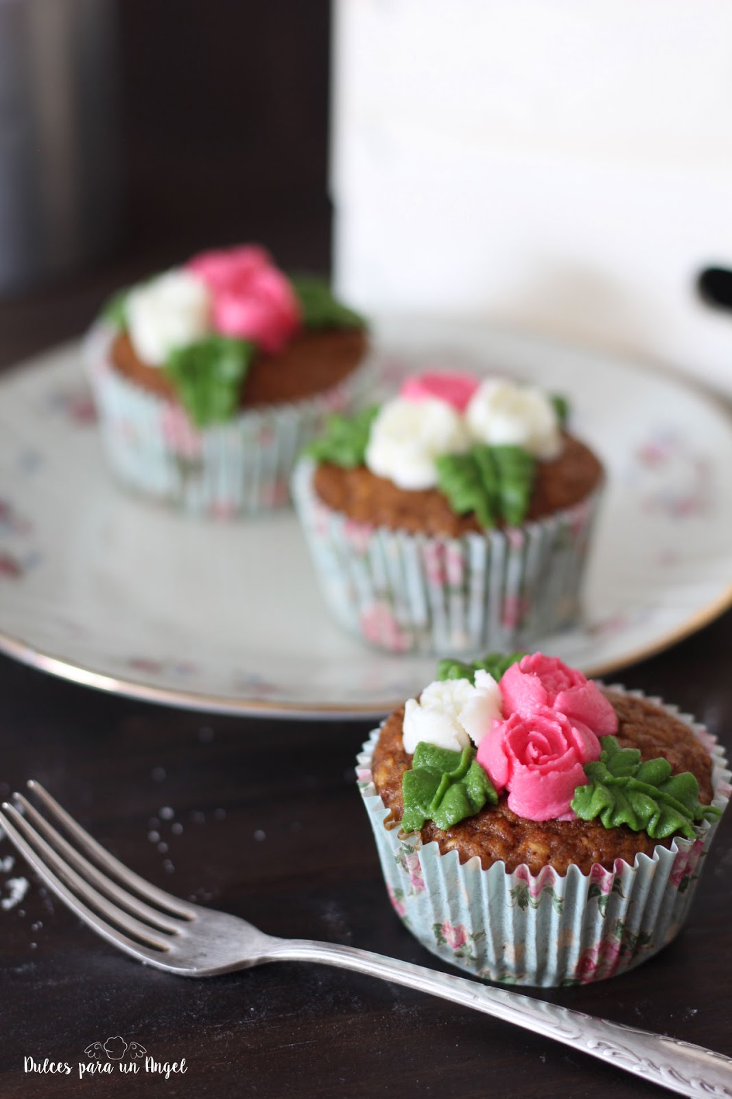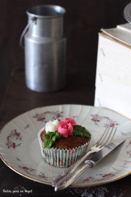 Los cupcakes necesitan menos tiempo de horneado, entre 20 y 22 minutos a la misma temperatura, 180º.