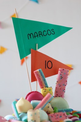- 2 banderillas caseras con brochetas y cartulinas para el nombre y la edad