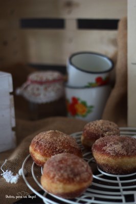 Mezclamos el azúcar con la canela en un bol para rebozar las berlinas inmediatamente.
