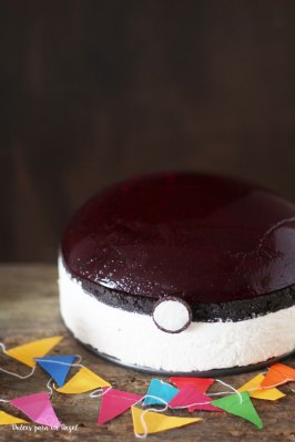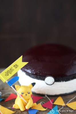 Una tarta pokeball que no es más que una tarta de queso con gelatina de fresa.