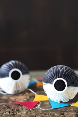 La mitad de la galleta mini oreo hace de botón de la pokeball. Sólo tenemos que dividirla y pegarla con una gota de chocolate.
