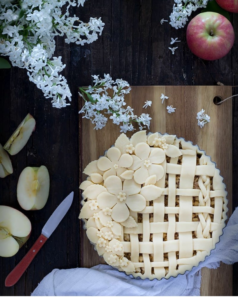 Hoy es el cumple de mi mami, la abuela Nina. He decidido hacer su tarta preferida, la tarta de manzana que hice hace un mes pero un poco más especiada y con una decoración mucho más elaborada y especial como ella.