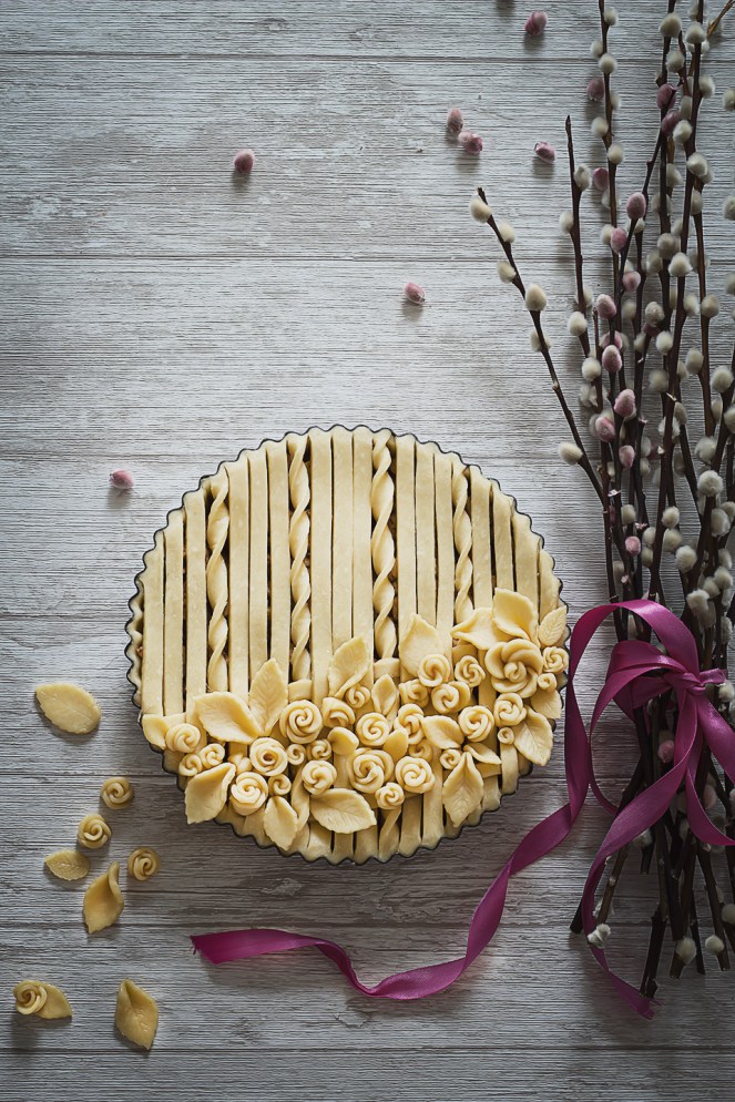 Una vez hayas decorado con la otra mitad de la masa, pinta con huevo batido y hornea en la parte baja del horno a 180° durante unos 60 minutos o hasta que esté bien dorada y veas que el relleno burbujea ( si tú decoración lo permite)