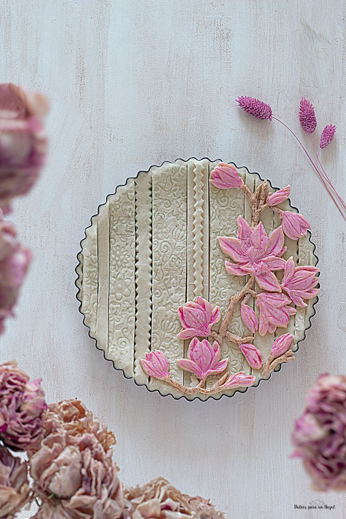 -Para la decoración usa la masa lo más fría posible. Estira y enfría, da forma y enfría. Mete en el frigorífico todas las veces necesites para que no pierdan la forma, con 10 minutos frío es suficiente para las tiras y las decoraciones.