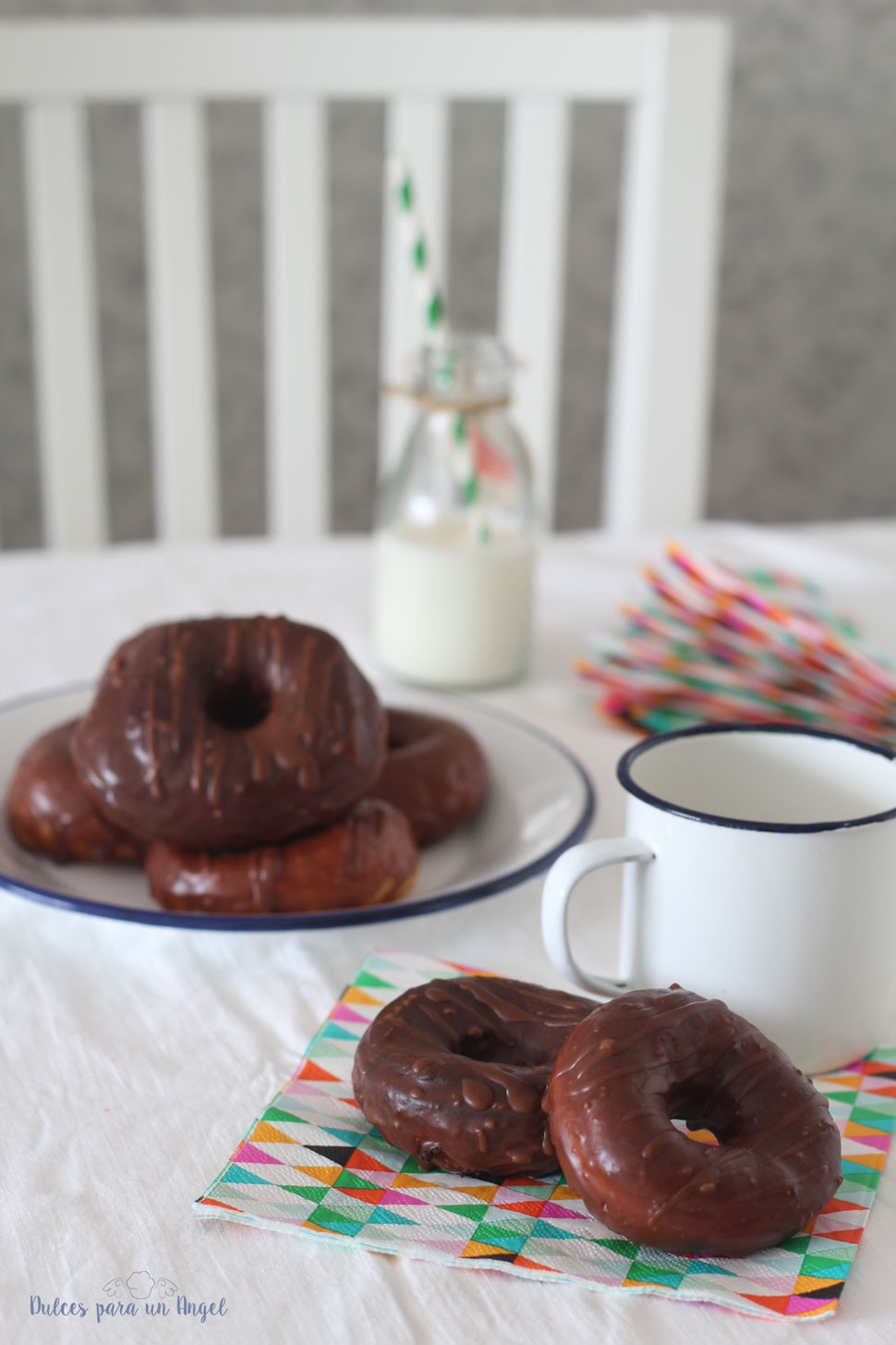 Una nueva receta de donuts. Otra vez más he preparado una gran tanda de donuts para que mis niños se lleven al cole o merienden en casa. Solamente aguantan tiernos el día de su preparación, pero si se congelan una vez fríos, tenemos donuts casi en cualquier momento, sólo hay que esperar a que descongelen a temperatura ambiente durante aproximadamente media hora o un poquito más.