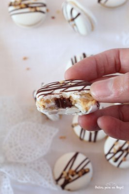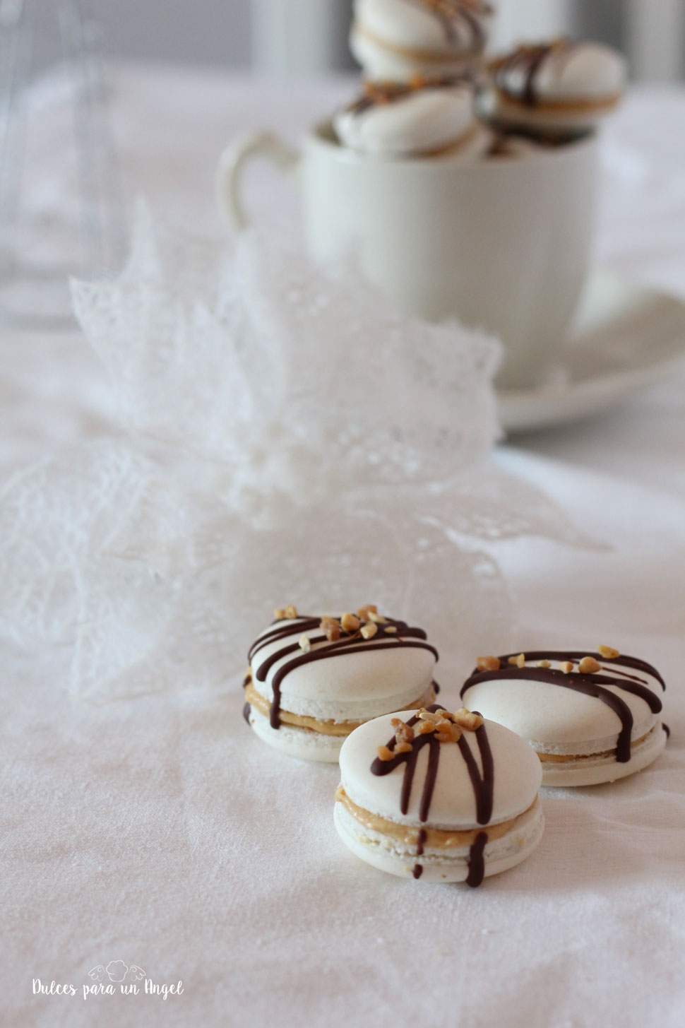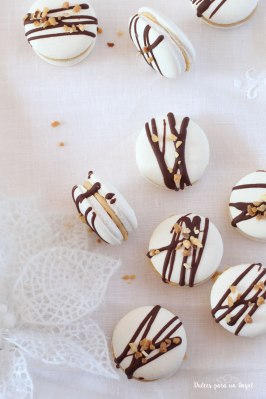 La receta de hoy son unos macarons de merengue italiano, con relleno de SMBC de turrón, ganache de chocolate con leche y trocitos de crocanti de almendras. Serán nuestro dulce de hoy en Nochebuena.