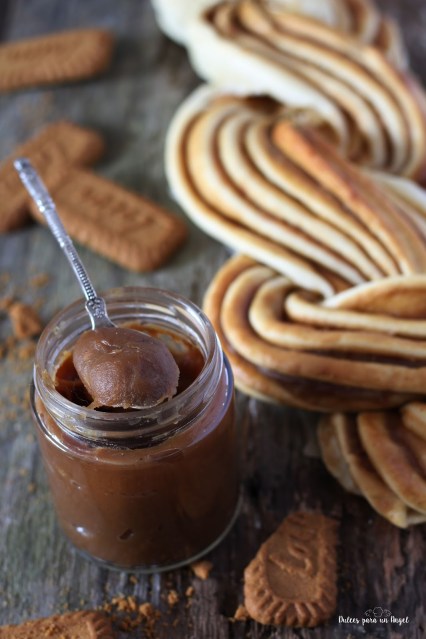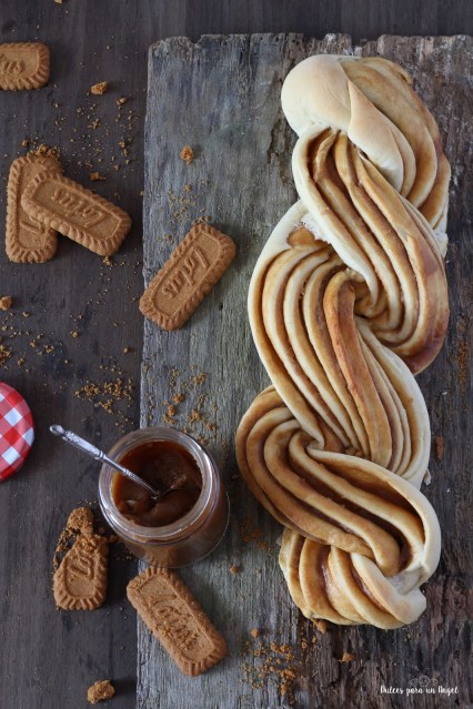La receta de hoy es una trenza de crema casera de spéculoos. Spéculoos es una especie de galleta navideña muy tradicional en Bélgica, Holanda, Alemania y en el norte de Francia. La principal característica de estas galletas servidas en los mercados de Navidad es que suelen tener formas o motivos que evocan la historia navideña de Nicolás de Bari (según Wikipedia). En España encontramos lo más parecido en todos los supermercados con el nombre de galletas Lotus.