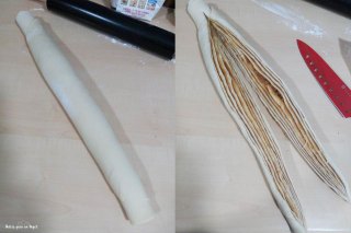 | Después de extender la crema enrollamos, cortamos en dos y formamos la trenza. |