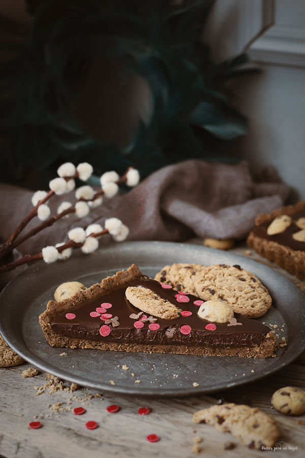 Sacamos la base del congelador y rellenamos con la crema de chocolate. Decoramos con las cookies y los sprinkles. Dejamos en el frigorífico al menos 2 horas o hasta el momento de servir.