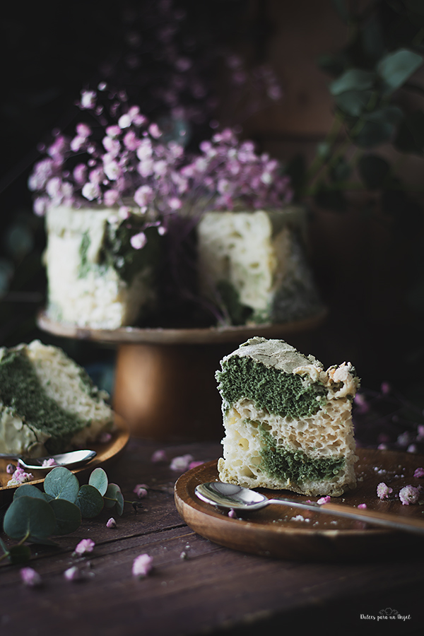 Vamos con la receta de hoy, un delicioso y esponjoso Angel food marmolado de té matcha.