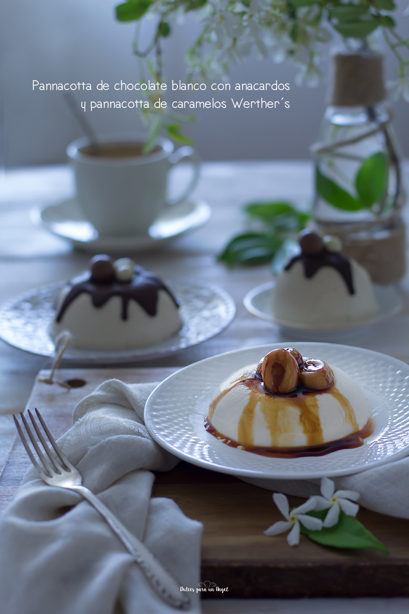 Nunca había hecho pannacotta, con lo fácil y rica que es, y cuando encuentro el momento no he podido decidir entre dos recetas a las que le había echado el ojo, así que hago un 2x1. La receta de la pannacotta del chocolate blanco es del gran Chef Bosquet, #consejeroMasterChef que nos prepara a diario… Sigue leyendo Pannacotta de chocolate blanco con anacardos y pannacotta de caramelos Werther´s