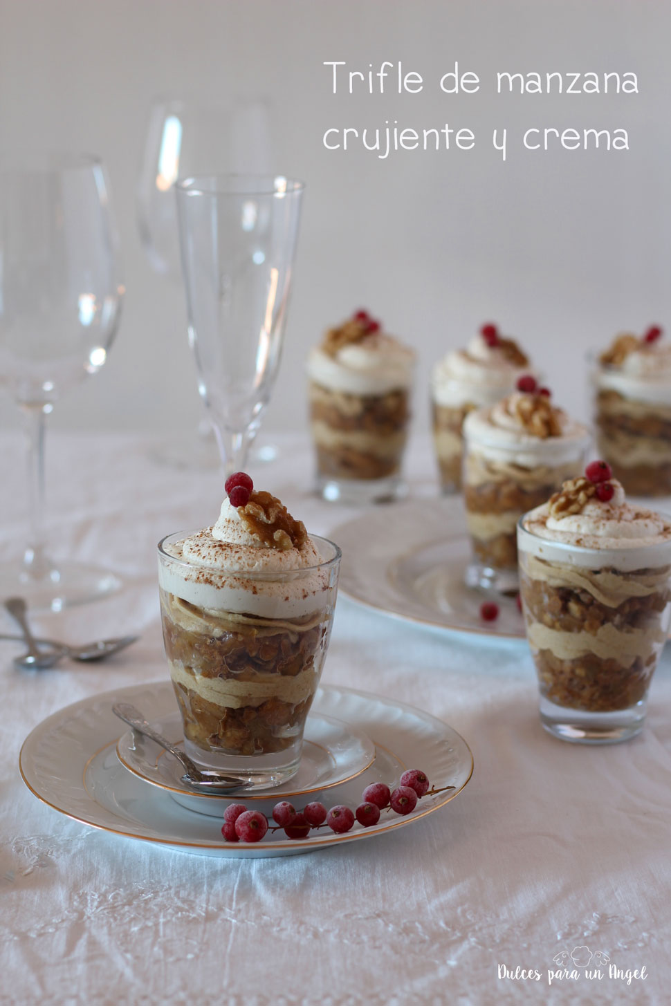 Trifle de manzana crujiente y crema en vasitos