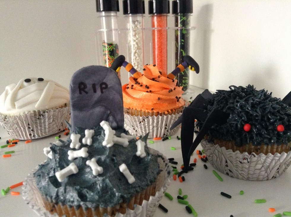 Unos cupcakes de vainilla, los básicos, pero rellenos de sirope de fresa y decorados de muerte. Para el próximo jueves, serán la delicias de todos. He hecho cuatro decoraciones distintas y no todas tienen la misma complicación a la hora de elaborarlas, tu eliges: truco o trato? Como la receta anterior de cupcakes de chocolate … Sigue leyendo Cupcakes de vainilla decorados para HALLOWEEN!
