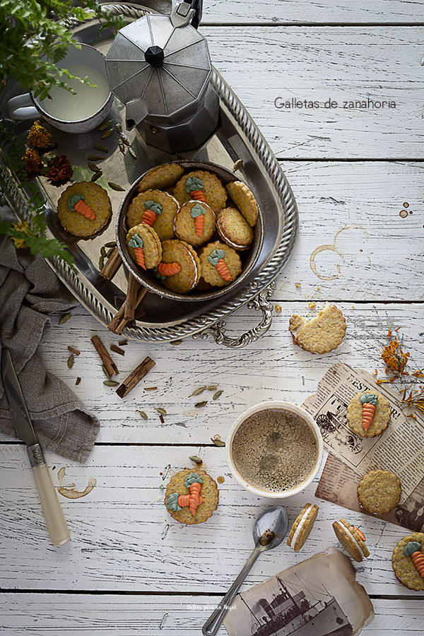 Unas buenas galletas de zanahoria especiadas y rellenas de crema de queso lo que las hace quedarse blanditas por el relleno. Es una receta sencilla en la que sólo hay que juntar todos los ingredientes de la masa, también podéis omitir el relleno y comerlas crujientes, tú decides =) Receta modificada e inspirada en el… Sigue leyendo Galletas de zanahoria