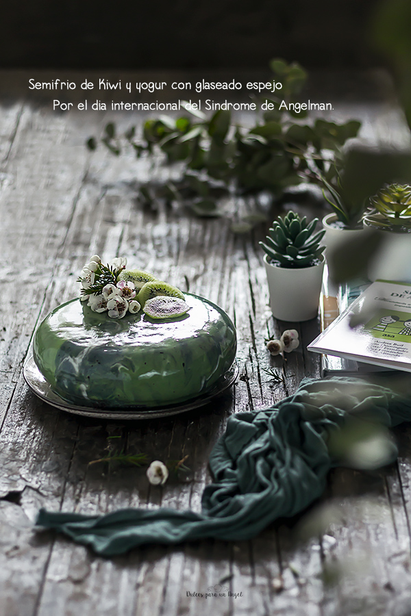 Semifrío de kiwi y yogur con glaseado espejo – Por el día internacional del Síndrome de Angelman